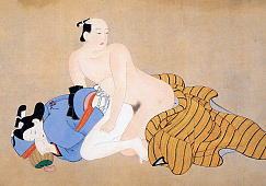 女性史研究家の語った女性論は、大昔には女性が権力を握った時代があった、と言った。 しかし、今ではそれは否定されている。女権支配はなかったが定説である。 歴史上女性が権力を握ったことはなかったが、先進国では今、フェミニズムを掲げて女性が台頭してきた。 女性の台頭は歴史上初めてのことである。 我が国の女性運動は女性であることに拘り、人間に脱皮しなかった。 専業主婦をも女性として擁護したので、結局、働く女性たちから見捨てられてしまった。 ゲイも同性愛者をすべて仲間と見なして、異性愛の支配する世界に対置しようとしている。 そして、ゲイの新しさを訴えず、同性愛者とゲイの違いを論じない。 日本文学に表れた同性愛の最も古いものは、「昔、男いとうるわしき友ありけり」と書かれた「伊勢物語」であるといわれる。 これほど昔から、同性愛はあった。 同性愛があったのは、我が国だけではない。 中国にもあったし、ギリシャにもあった。 世界中にあったし、いまでも途上国にはあるはずである。 しかも、男性の同性愛は、けっして日陰者ではなかったし、差別の対象でもなかった。 本書は、男色つまり男性の同性愛を描いた浮世絵集である。 男女の性交の姿態を描いた、春画とか枕絵と呼ばれるのは有名だが、男色は語られることは少ない。 しかし、男色もたくさん描かれていた。 菱川師宣、鈴木春信、葛飾北斎、喜多川歌麿などといった有名画師が、あでやかに男性同士の絡みを描いている。 しかし、これら同性愛は、現代のゲイとは決定に異なる。 かつての同性愛は、成人男性と年少の男性との間にかわされた、肉体的な愛情関係だったのである。 変声期までとか、髭が生えるまでといった少年たちが、成人男性の相手をしたのである。 しかも、成人男性の性的な行動として、女色(男性と女性の間の性行動)とまったく同じ位置に、男色(成人男性と若年男性の性行動)が位置づけられていた。 江戸時代の初期はまさしく男色が「衆道」として立ち表れてくる時期と重なるが、このことはそれだけ男色が武士社会に定着してゐたことを物語ってゐるであらう。そして男色が「道」として立ち表れてきたといふことは、必然的に他の性現象との差別化が強く意識されてきたことを意味するであらうが、当時の男色論の多くは「女色・男色いづれが優れてゐるか」といふものであつた。ところがさうした論争を読んでゐて興味深いことは、「女色・男色いづれが優れてゐるか」といふ設問の根抵に、女色と男色を明確に区別する意識が見出せないことである。すなはち当時の論者の性意識においては、女色と男色が決定的な区別なく同一線上にあつたことを意味し、それはまたそれまでの日本の性風俗において、男性の性的欲望の対象が女であつても男であつても、選択自由であったことを意味するのである。P6 かつての性関係は、年齢秩序と性別役割を背景とし、社会的な上位者が下位者に挿入する関係として、成り立っていた。 だから、社会的に上位の男性が、下位の女性に挿入するのと、年齢が上=社会的に上位者が、年齢が下=下位者に挿入するのは、まったく同じことだと見なされていたのである。 プラトンの「饗宴」でも書かれているように、若年男性が高齢者に挿入する関係は、文化の流れに逆らうことだから、どんな社会でも厳しく禁止されている。 肉体が優位した社会では、知恵は加齢によって蓄えられので、年齢秩序が文化の継承を支えた。 文化的な上位者が主導権をとる限り、どんな性関係も許容範囲内だった。 しかし、現代にいうゲイは、年齢秩序が崩壊したので、登場した対等な横並びの人間関係である。 ここで、同性愛として、男色とゲイを一括りすると、年齢秩序の崩壊が、もたらした意味を殺すことになる。 ゲイは性別役割の崩壊によって生まれたのではなく、年齢秩序の崩壊によって誕生したのである。 かつての同性愛=男色は、明らかに年下もしくは女性の代わりとして、愛情の対象としたのである。 浮世絵に表された男色図に共通していへることは、男色相手のほとんどが年若い女性と見紛ふほどの美形の若衆であるといふ点である。着物も女性物を着てゐるので、図柄を見ただけでは男か女か分からないことが実に多い。明らかに男と男という図柄はまったくといつていいほどない。P91